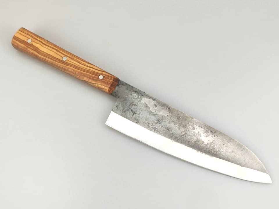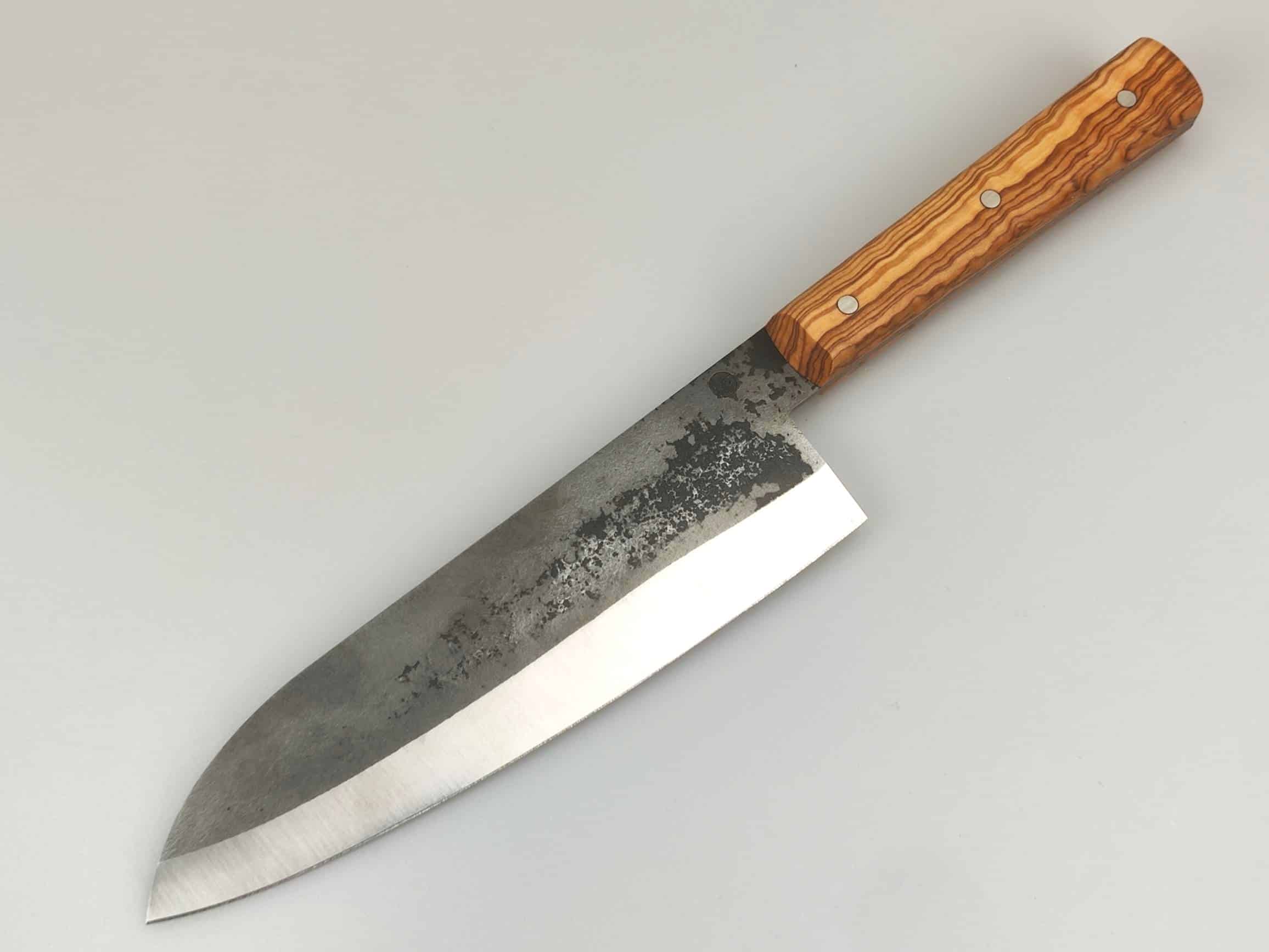Couteau de chef avec lame en acier inoxydable d’une dureté HRC 58-59. Cette lame ne nécessite pas d’entretien particulier, assure une bonne tenue de coupe et le tranchant est facile à entretenir.