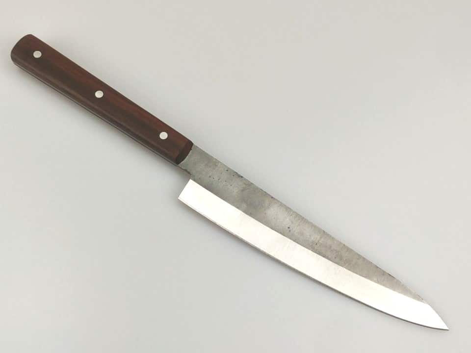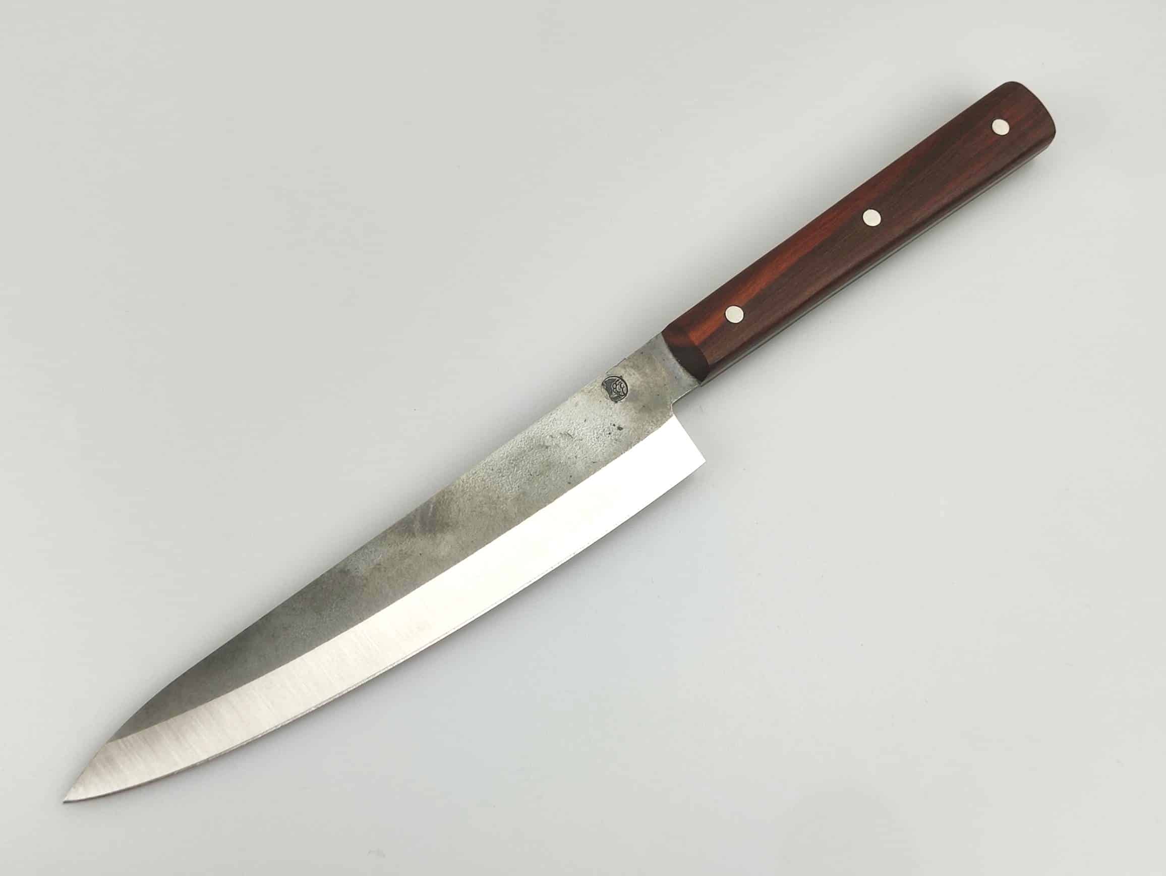 Couteau de chef avec lame en acier inoxydable d’une dureté HRC 58-59. Cette lame ne nécessite pas d’entretien particulier, assure une bonne tenue de coupe et le tranchant est facile à entretenir.