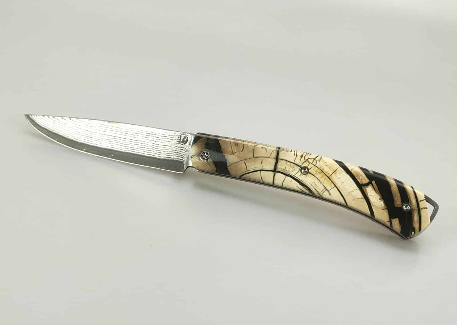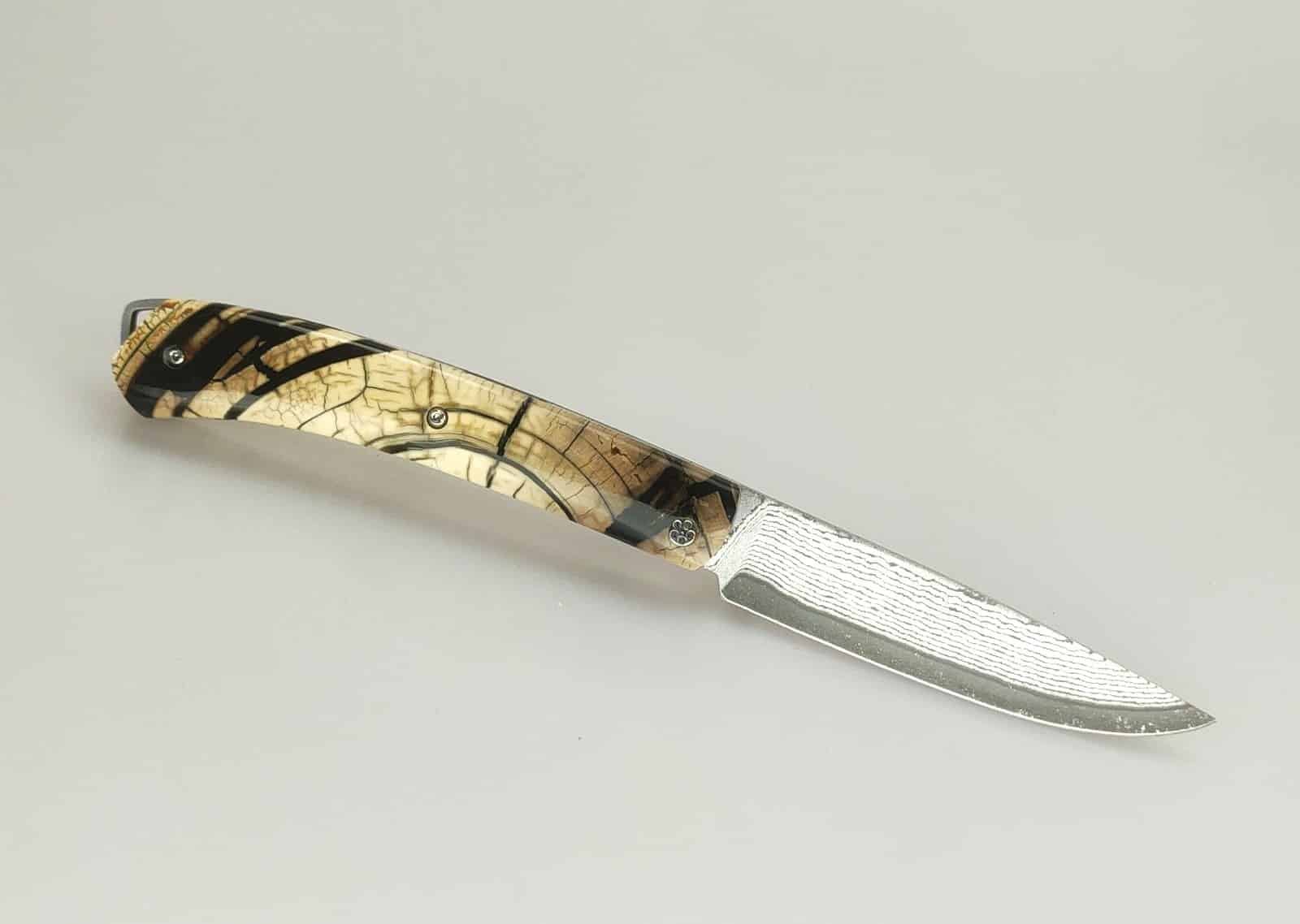 Le Pastelier cran plat Damas Japonais VG10 67 couches et tranche d’ivoire de mammouth stabilisé